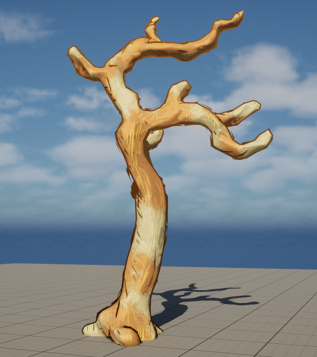Playing with engine to create illustrative style, I am using a flipped normal effect with an unlit shader to create an outline with random faces copied and displaced to give a random jagged effect to the tree trunk.